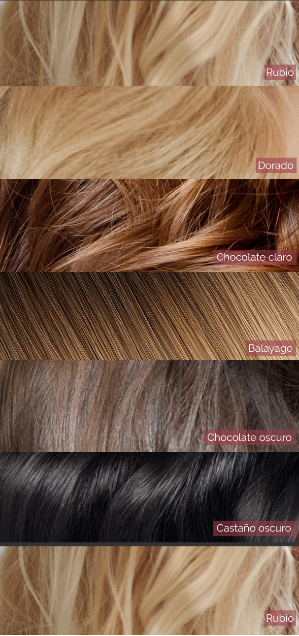 Contamos con una variedad de tonos pensados para integrarse de forma natural con tu cabello. Además, la textura de nuestras extensiones permite que se mezclen con facilidad, logrando un look uniforme y sin diferencias visibles. El color que debes elegir debe basarse en el tono que tienes en las puntas de tu cabello, para lograr una integración más natural y armoniosa.